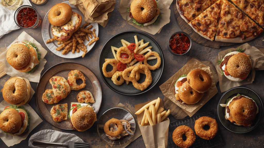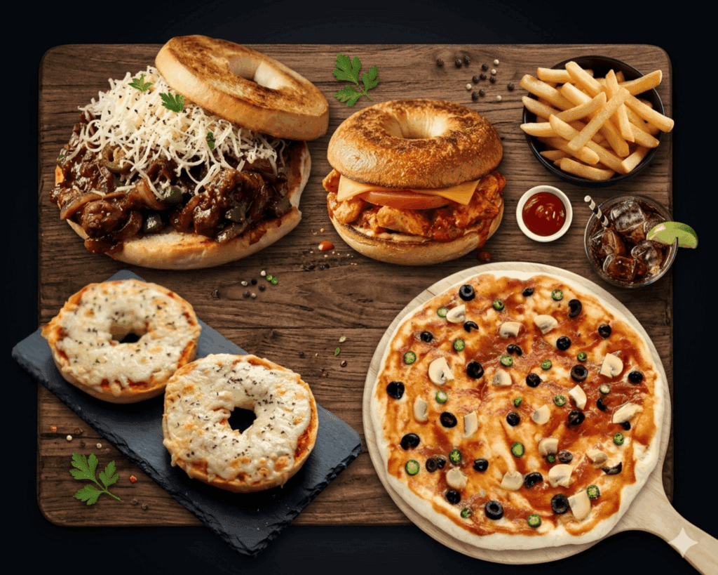 Juicy burgers, cheeky bagelizzas, high octane breakfast bagels, & snacks ‘n sides that know how to party and deli sandwiches straight outta downtown New York—minus the subway rush.